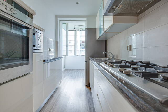 De keuken is uitgerust met een granieten werkblad en diverse inbouwapparatuur. Vanuit de keuken is er eveneens toegang tot het balkon en een handige balkonkast met de opstelling van de elektrische boiler.