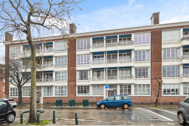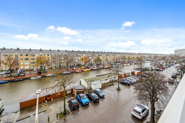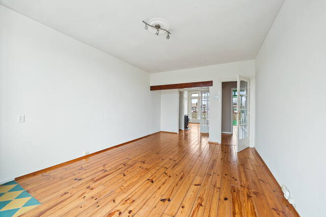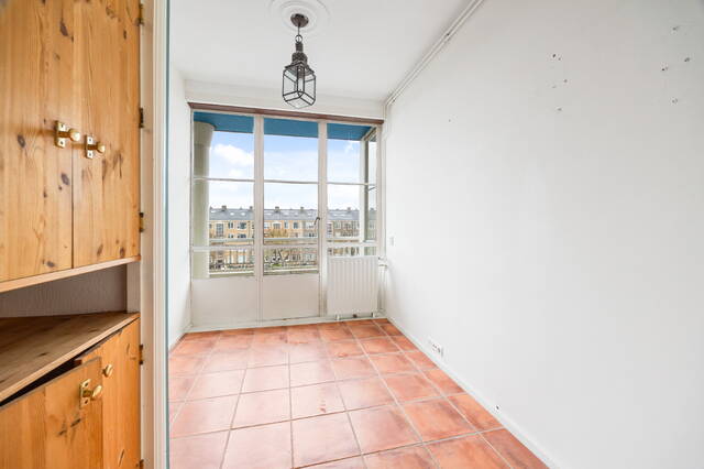 This spacious apartment, located on the fourth and top floor, offers 76 m² of living space and is located in a small apartment complex (built in 1952). It features a living/dining room and two bedrooms. Both the front and rear have balconies. The living room offers expansive views of the waterway and houseboats of the Veenendaalkade, as well as the The Hague skyline. Would you like to create an extra bedroom? This can easily be done by removing a wall between the living and dining room. The kitchen, bathroom fixtures, and electrical fixtures are basic and require modernization.