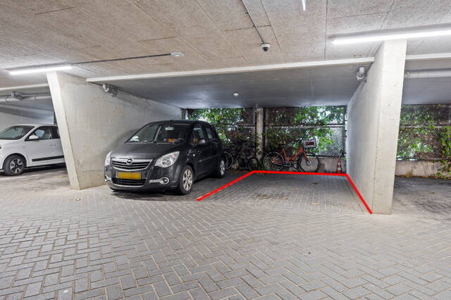 De inpandige parkeerplaats (met eigen kadastraal nummer) is in 2022 brandwerend gemaakt en is voorzien van camera bewaking (2023). Deze moet verplicht worden afgenomen en kost € 25.000,00