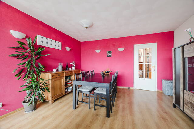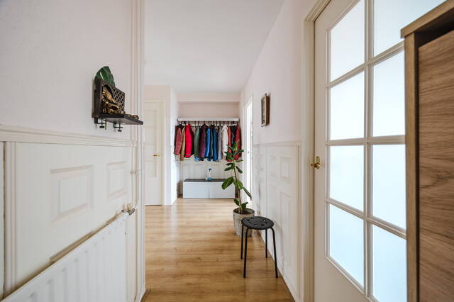 Situated on the second and top floor of a well-kept complex (built in 1968), the apartment benefits from privacy, open views, and abundant daylight. The bright L-shaped living room of approx. 38m² offers a pleasant separation between seating and dining areas and is enhanced by large windows.