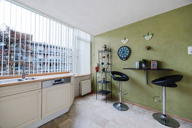 Het appartement is gelegen op de tweede en bovenste verdieping van een goed onderhouden complex (bouwjaar 1968) en profiteert van privacy, vrij uitzicht en veel daglicht. De lichte L-vormige woonkamer van circa 38m2 biedt een prettige scheiding tussen zit- en eetgedeelte en beschikt over grote raampartijen.