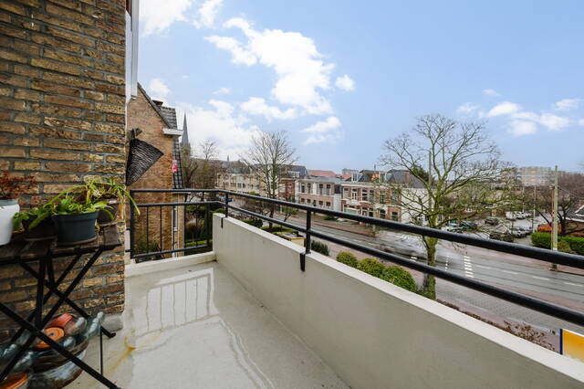 Vanuit de woonkamer is het zuid-oostelijk gelegen balkon van circa 5m² bereikbaar, waar u kunt genieten van vrij uitzicht op groen en de levendige winkelstraat. Over de volledige breedte van de gevel zijn elektrische zonweringen geplaatst, wat extra comfort biedt op zonnige dagen.