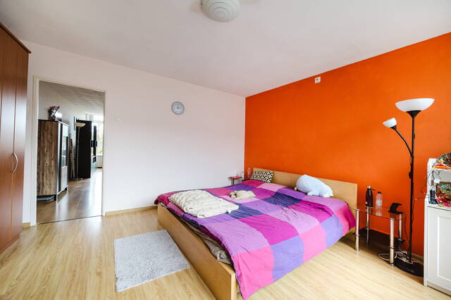 De derde slaapkamer ( 8 m2) bevindt zich aan de achterzijde van het appartement. Deze kamer is ideaal als tweede kinderkamer, werk- of studeerkamer en profiteert van een rustige ligging en daglicht. Alle slaapkamers zijn afgewerkt met een combinatie van laminaat en parketvloeren en beschikken over een prettige plafondhoogte.