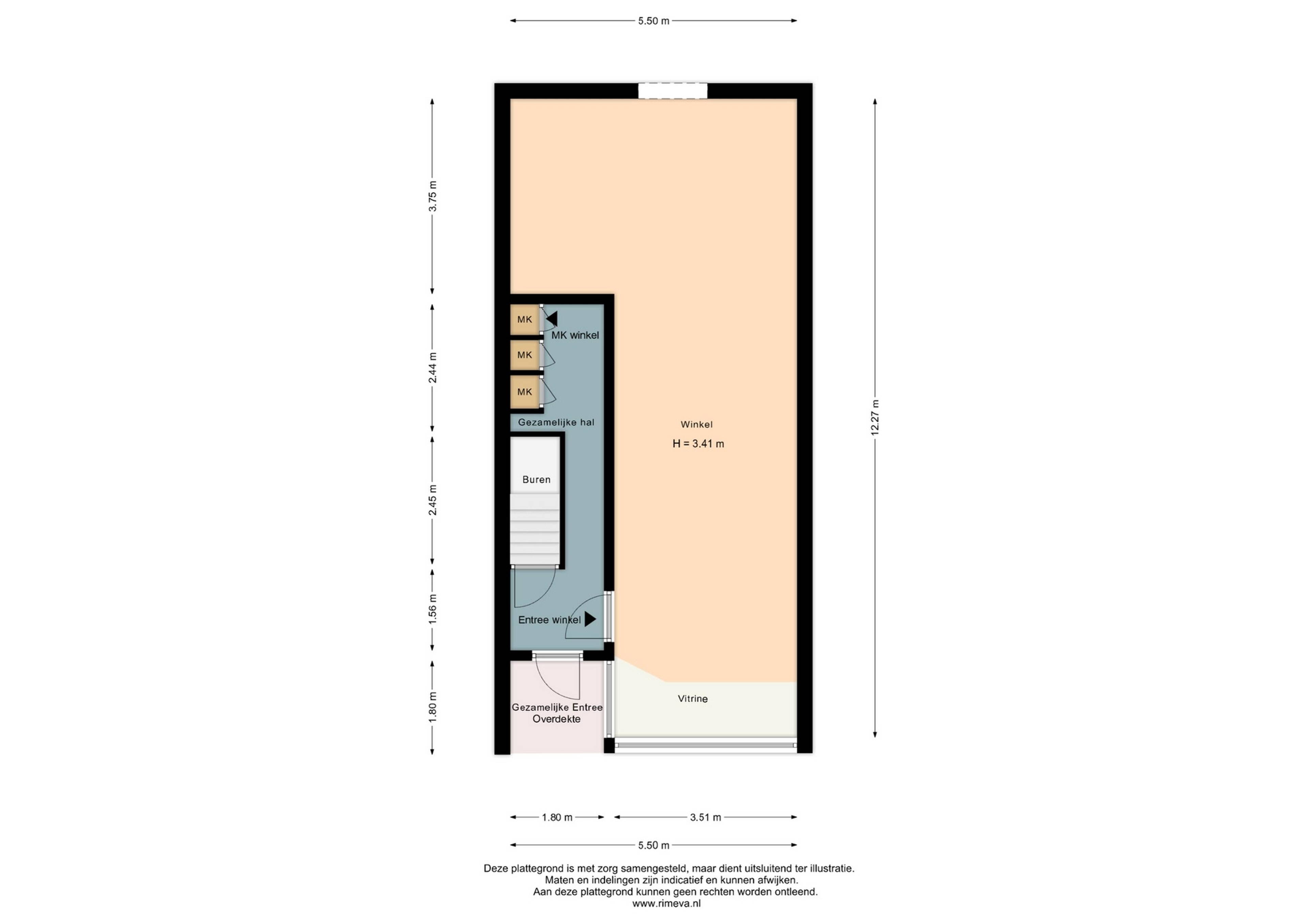 Oppervlakte winkelruimte: circa 173 m²