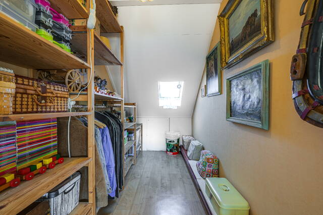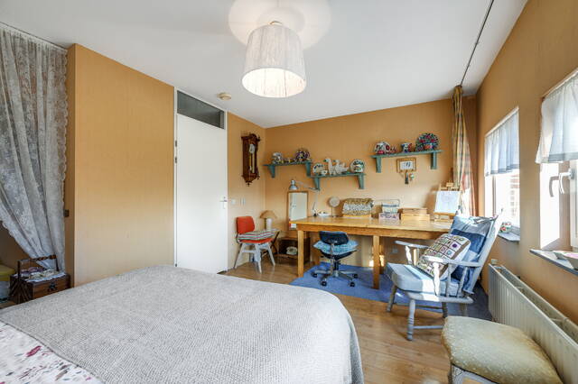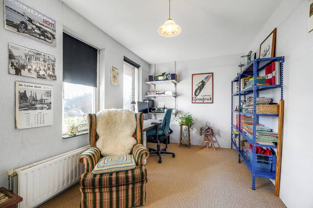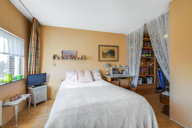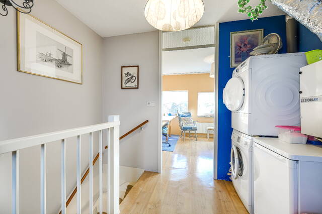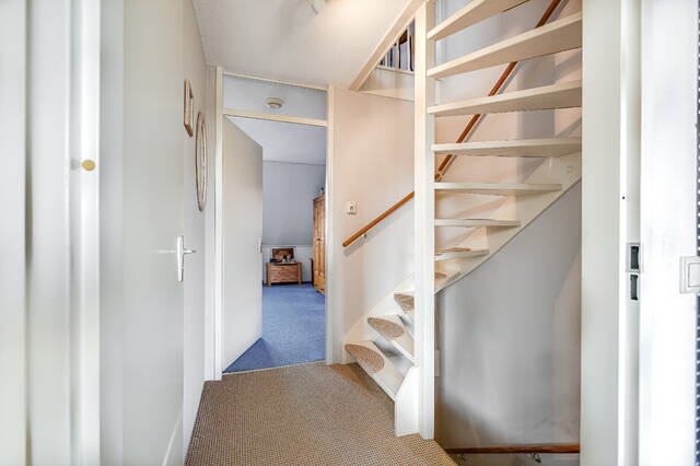De tweede verdieping beschikt over een ruime overloop (met raampje) en de opstelplaats voor wasmachine en droger, evenals de mechanische ventilatie en cv-ketel. De slaapkamer is voorzien van een ruime inloopkast met een raampje, wat zorgt voor extra lichtinval en natuurlijke ventilatie.