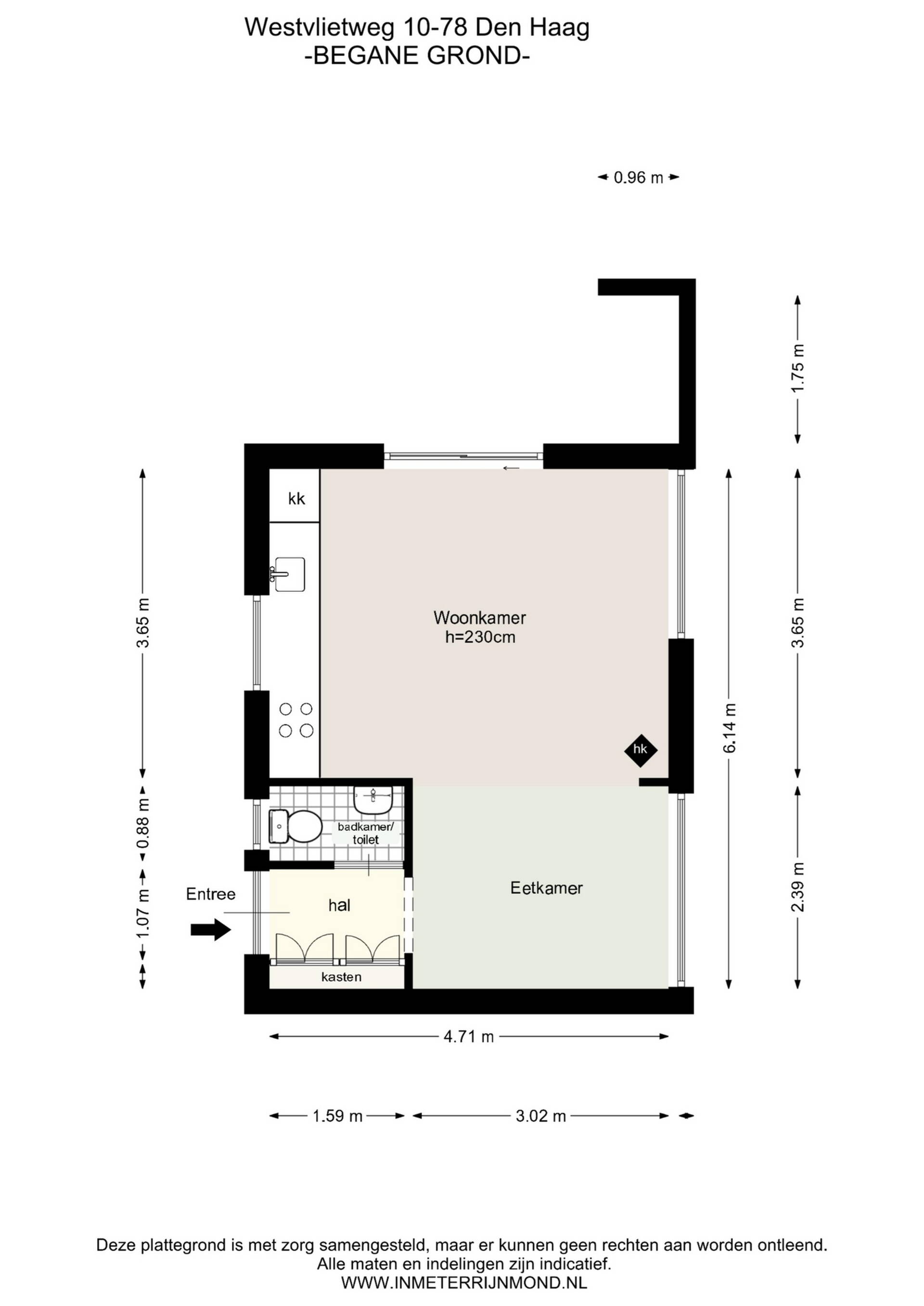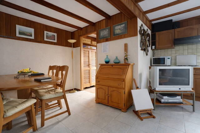 Via de entree komt u in de hal, die toegang biedt tot het ruime toilet met wastafel (met de mogelijkheid om hier een badkamer van te maken) en de lichte woonruimte met open keuken. De keuken is uitgerust met een vierpits gasfornuis met afzuigkap, koelkast en magnetron.