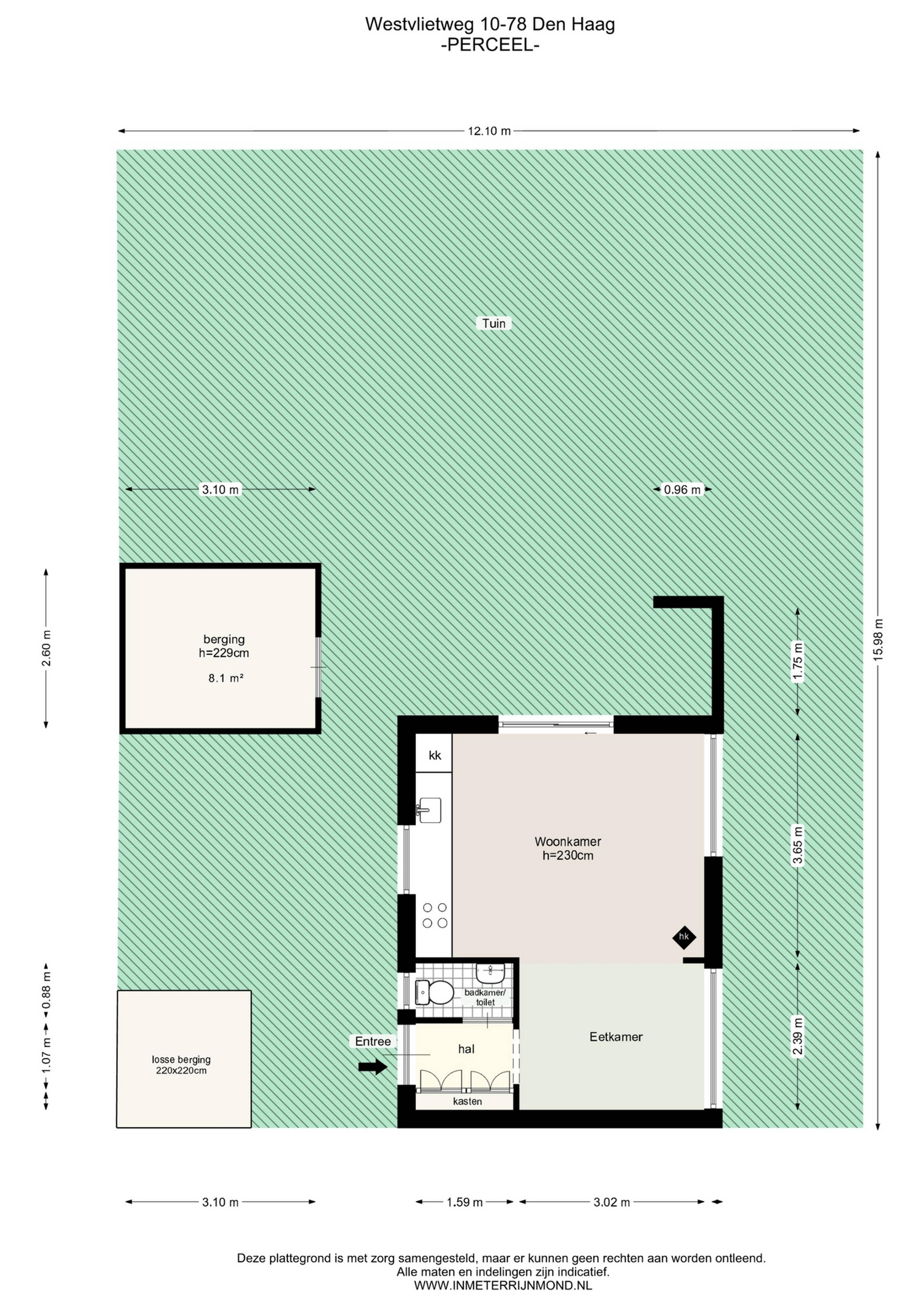 Het tuinhuis is gelegen op een perceel van maar liefst 213 m². De combinatie van de ligging, de privacy en de grootte van de tuin maakt dit een aantrekkelijke plek voor ontspanning en recreatief gebruik.