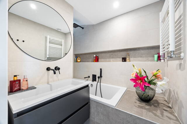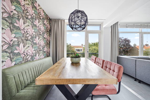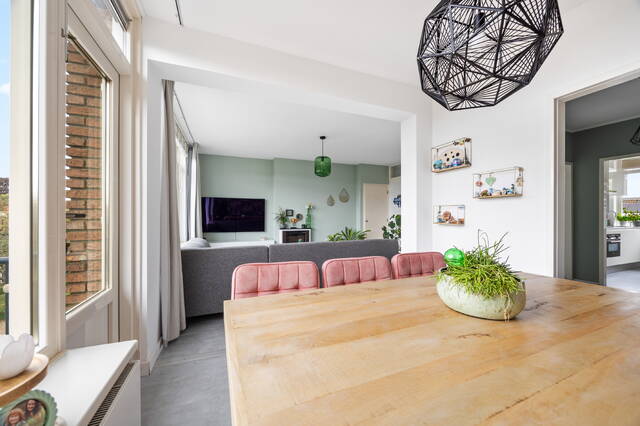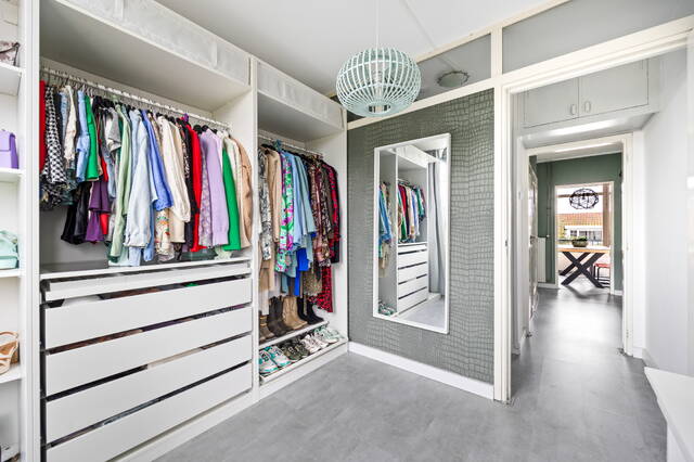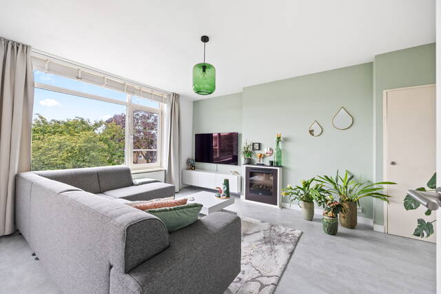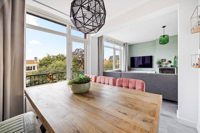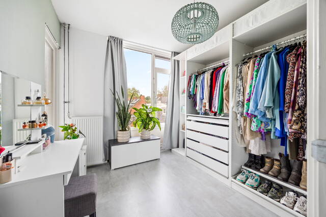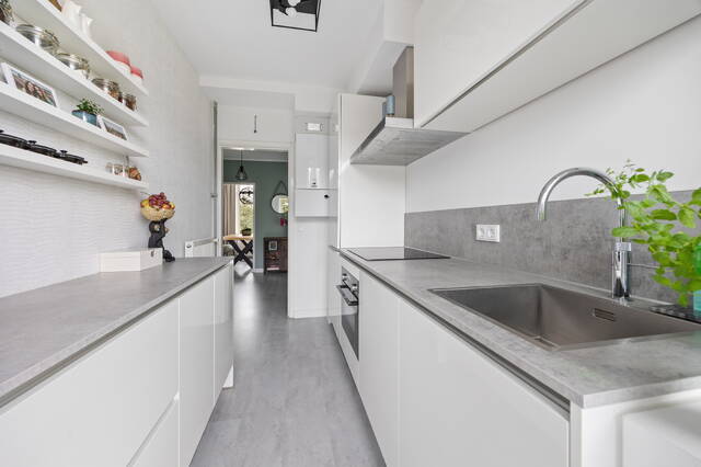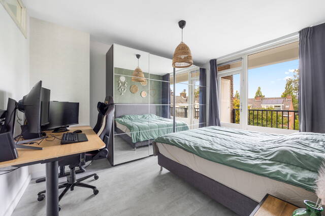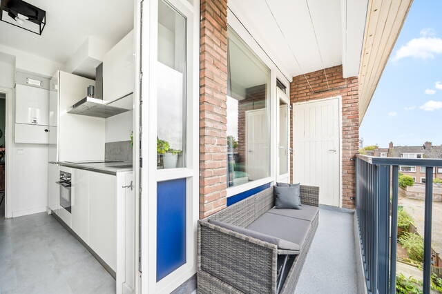 De ruime hal biedt toegang tot alle vertrekken en beschikt over een praktische inbouwkast. De ruime en lichte woon/eetkamer beschikt over twee inbouwkasten en geeft u toegang tot het balkon aan de voorzijde. De keuken is uitgerust met Siemens apparatuur en biedt alle wenselijke voorzieningen, waaronder een inductiekookplaat met afzuigkap, Quooker, koel-/vriescombinatie, combi-oven en vaatwasser. Ook bevindt zich hier de opstelplaats van de CV-ketel (2023). De luxe badkamer, eveneens in 2020 vernieuwd, beschikt over een ligbad, wastafel met meubel en radiator. Aan de achterzijde van de woning bevinden zich twee slaapkamers. De grootste slaapkamer geeft toegang tot het tweede balkon dat is voorzien van een handige balkonkast. Via de wasruimte bereikt u de tweede slaapkamer.