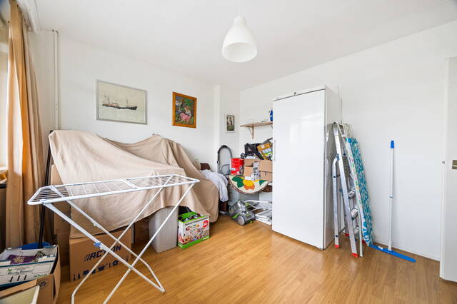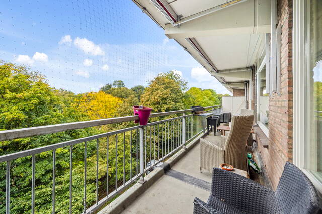This spacious five-room apartment is located on the fourth floor and features a lovely southwest-facing balcony with unobstructed views of greenery. The apartment has three generous bedrooms (with the possibility of four). On the ground floor there is a private storage room and at the rear of the complex parking space is available for residents.