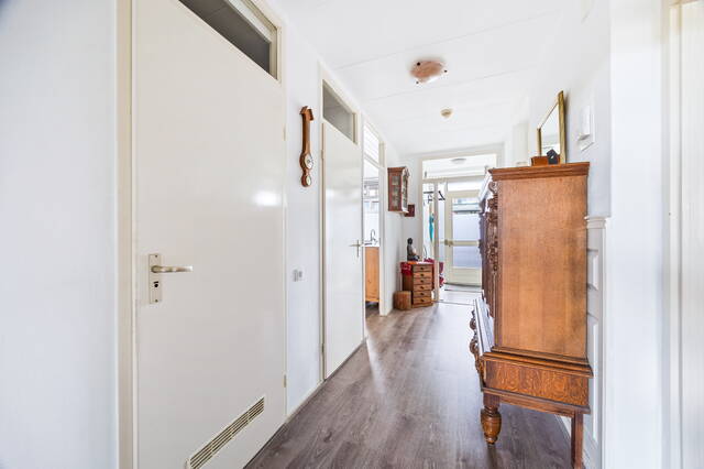 Via het tochtportaal komt u binnen in de hal. Vanuit hier heeft u toegang tot de keuken (galerijzijde), badkamer, toilet (met fonteintje), twee slaapkamers en de woonkamer. De keuken is uitgerust met een vijfpits gasfornuis met afzuigkap, oven, vaatwasser (Siemens) en koel- en vriescombinatie. De badkamer is voorzien van een douche, wastafel met meubel en wasmachine aansluiting. Ook bevindt zich hier de opstelplaats van de boiler. Aan de achterzijde ligt de ruime en lichte woonkamer met aangrenzende eetkamer met vaste kasten. Via een deur en hal vanuit de woonkamer krijgt u toegang tot de derde slaapkamer en een ruime bergruimte waar zich ook de meterkast bevindt. Via de woonkamer, eetkamer en slaapkamer aan de achterzijde krijgt u toegang tot het zonnige balkon over de volledige breedte.