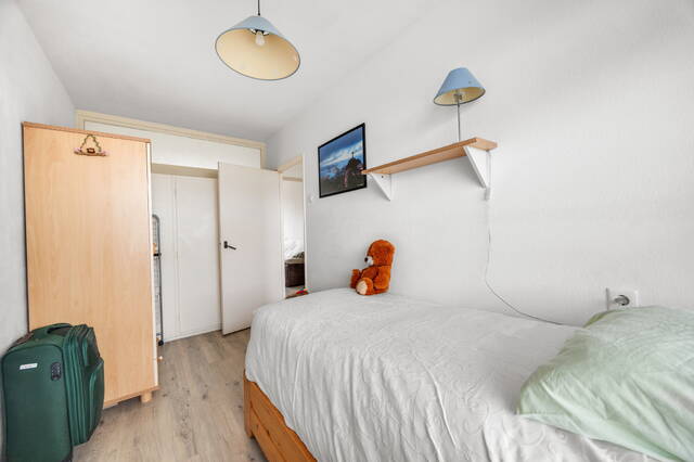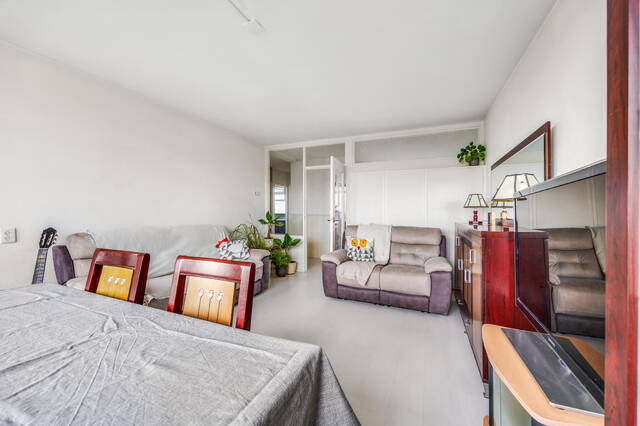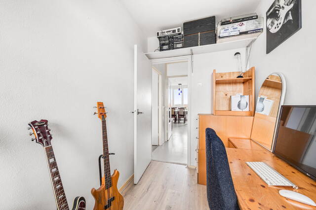 Through the entrance hall, you enter the corridor. From here, you have access to the fully renovated kitchen (October 2025), the bathroom, the toilet (partially renovated in 2025), the two bedrooms on the gallery side, and the living room. The kitchen is equipped with a four-burner induction cooktop with extractor hood, oven, dishwasher, fridge/freezer combination, and the fuse box. The bathroom is accessible from both the hallway and the master bedroom and is fitted with a spacious shower cabin, washbasin with cabinet, and connections for a washing machine and dryer. At the rear is the living room, which has plenty of natural light thanks to the large windows. From here, there is access to the master bedroom at the rear. Both the living room and the master bedroom have access to the spacious and sunny south-facing balcony with a beautiful view. The larger bedroom on the gallery side has two built-in closets, and the living room has one built-in closet.