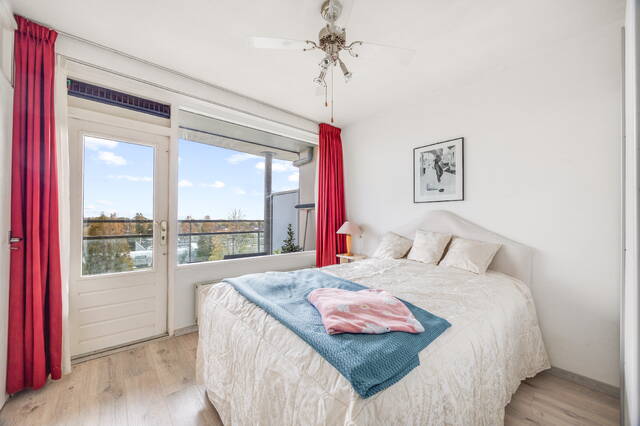Via het tochtportaal komt u binnen in de hal. Vanuit hier heeft u toegang tot de volledig gerenoveerde keuken (oktober 2025), de badkamer, het toilet (deels gerenoveerd in 2025), de twee slaapkamers aan de galerijzijde en de woonkamer. De keuken is uitgerust met een vierpits inductiekookplaat met afzuigkap, oven, vaatwasser, koel-/vriescombinatie en de meterkast. De badkamer is zowel vanuit de hal als vanuit de grote slaapkamer toegankelijk en voorzien van een ruime douchecabine, wastafel met meubel en de opstelplaats voor wasmachine en droger. Aan de achterzijde bevindt zich de woonkamer, die dankzij de grote ramen veel lichtinval heeft. Vanuit hier is er toegang tot de grote slaapkamer aan de achterzijde. Zowel vanuit de woonkamer als vanuit de grote slaapkamer is het ruime en zonnige balkon (zuiden) met het mooie uitzicht bereikbaar. De grotere slaapkamer aan de galerijzijde beschikt over twee vaste kasten en de woonkamer over één vaste kast.