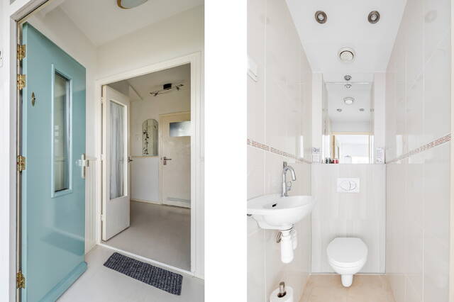 Centrale, afgesloten entree met brievenbussen, videofooninstallatie en toegang tot de inpandige bergingen. Via de lift of trap bereikt u de zesde verdieping.