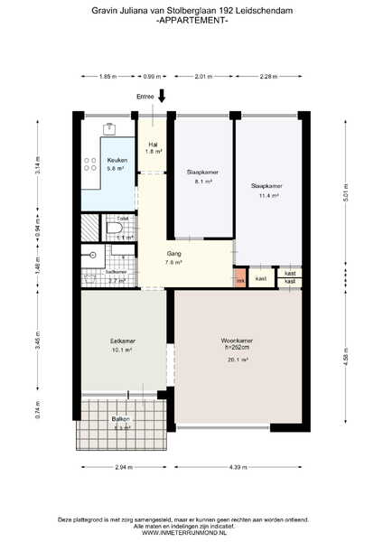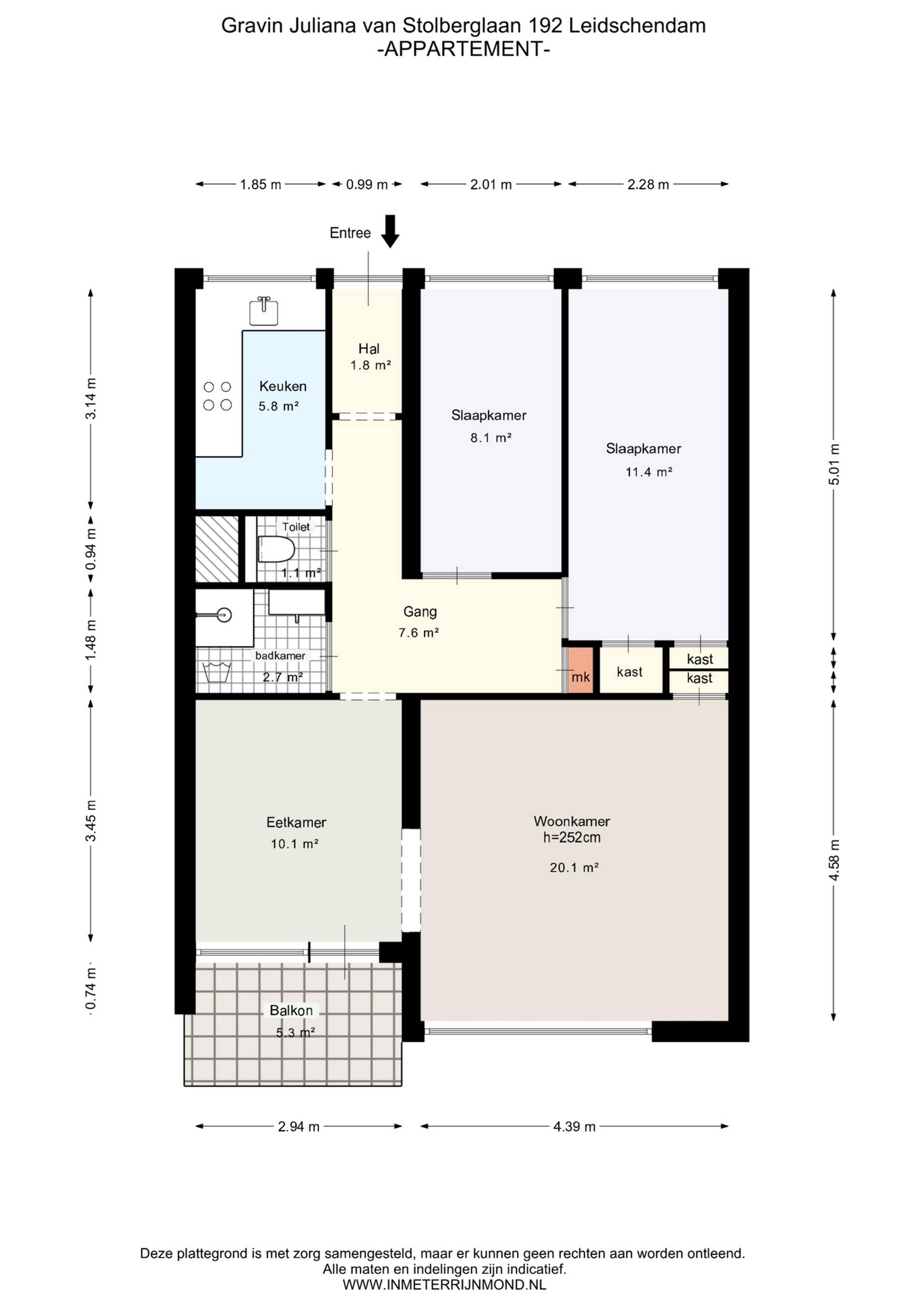 Hal: L-vormige hal met toilet en vaste kasten, waaronder de meterkast.