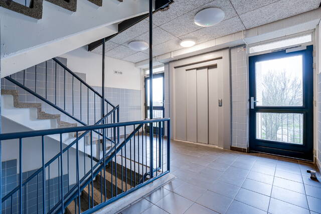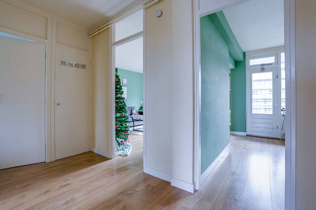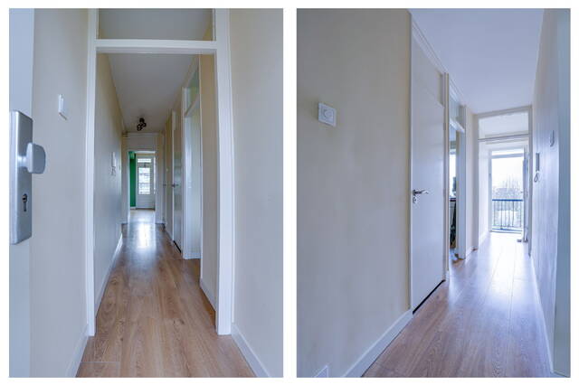 Entree: Afgesloten entree met lift en trappenhuis. De woning bevindt zich centraal op de galerij van de derde verdieping.