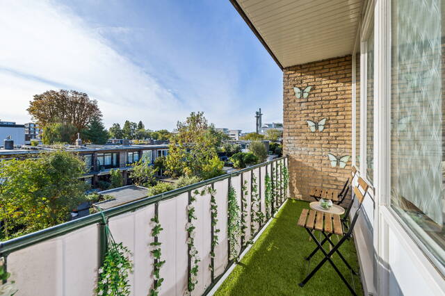 Het appartement (ca. 79 m² woonoppervlak) ligt op de eerste en tweede verdieping van een kleinschalig complex (1959) en beschikt over maar liefst 3 slaapkamers, 2 zonnige balkons én een eigen vrijstaande berging (7m²) op de begane grond.