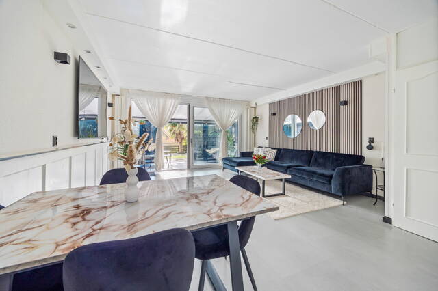 This modern and tastefully furnished terraced house (1985) has a living area of 85m² and is situated on a 123m² plot. The living room and kitchen have underfloor heating. A serre with sliding doors spans the full width of the rear facade. The sunny garden, situated on the water, offers unobstructed views. The first floor has three bedrooms. The master bedroom is equipped with an air conditioning unit.