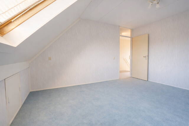 Beide slaapkamers beschikken over bergruimte achter knieschotten en hebben daglicht via dakramen.