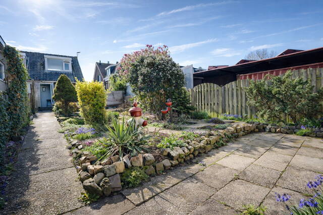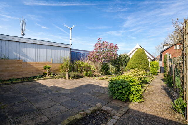 De zonnige achtertuin is beschut en biedt veel privacy. Achter op het perceel bevindt zich de vrijstaande garage (ca. 6,78 x 3,08 m). Deze garage is voorzien van een zolder, ideaal voor extra opslag.