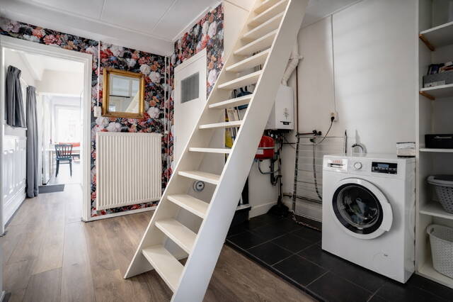Achterzijde woning: wasruimte, slaapkamer met daarboven nog een verdieping