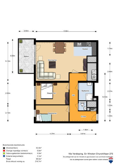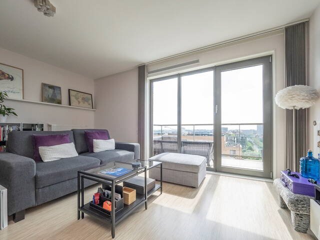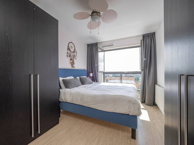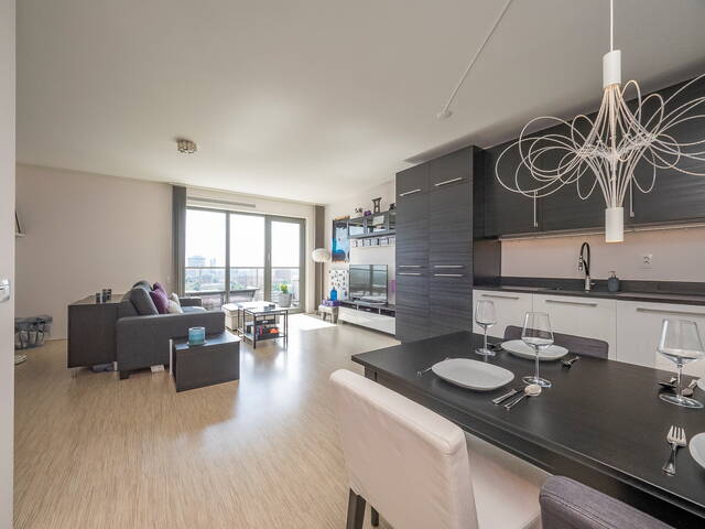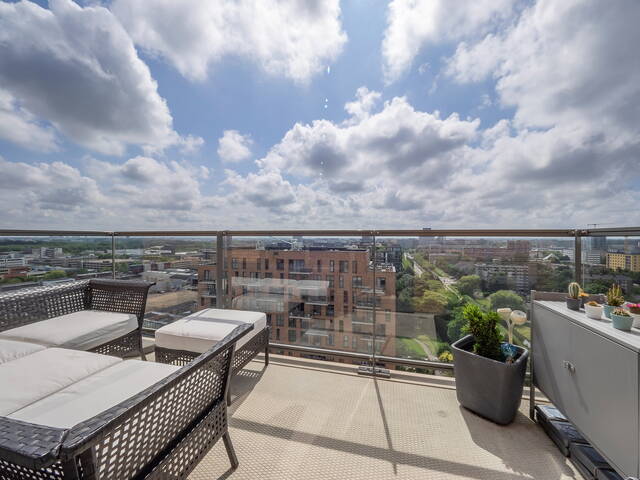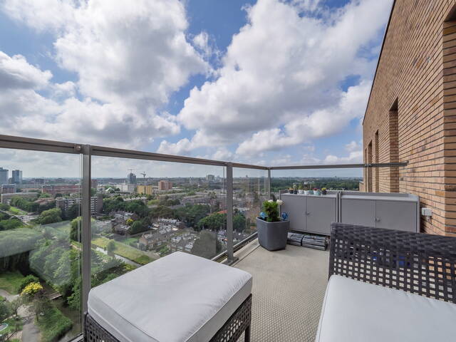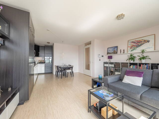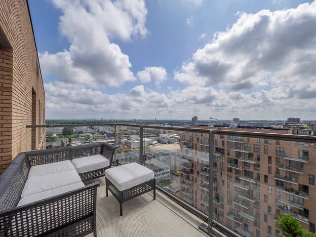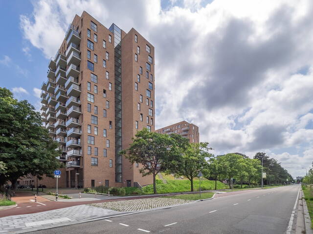 This well-maintained apartment is located on the 16th floor of the 2015-developed "De Hofmeesters" apartment complex in Rijswijk. The apartment has a living area of 82m² and features two bedrooms, a laundry room, separate toilet, and a sunny southwest-facing balcony. The apartment includes a private indoor storage unit, and a parking space is available for rent.