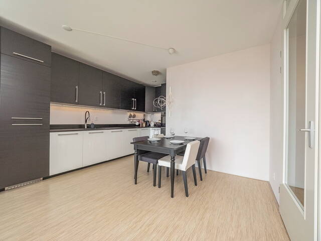 Charming three-room TOP apartment with expansive views of the Rotterdam skyline from the balcony.