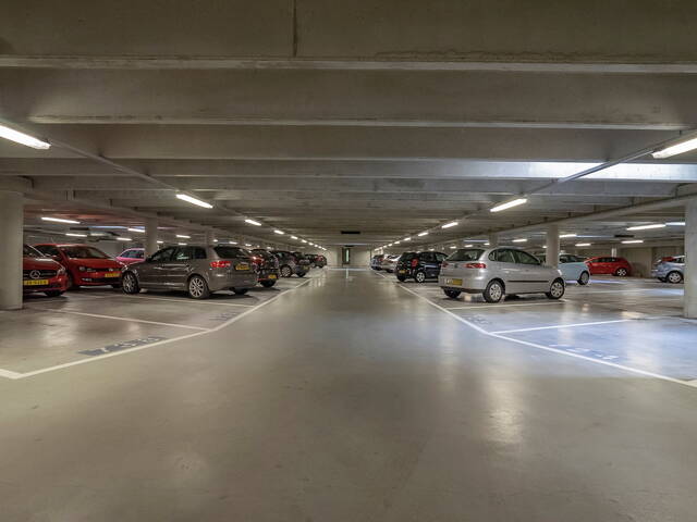 Parkeren is mogelijk in de ondergelegen parkeergarage waar een eigen parkeerplaats te huur is (circa € 100,00 per maand); koper dient dit te regelen met de verhuurder, Hof Wonen.