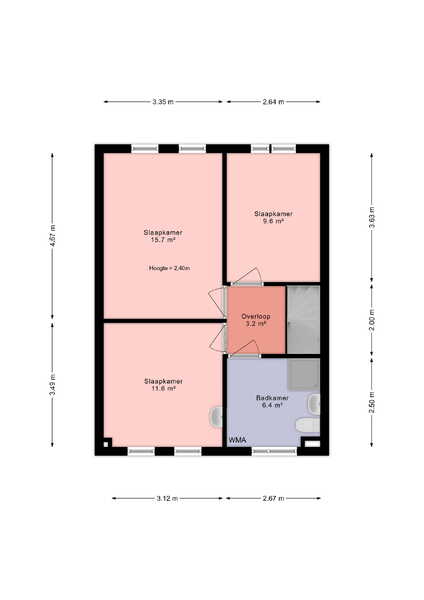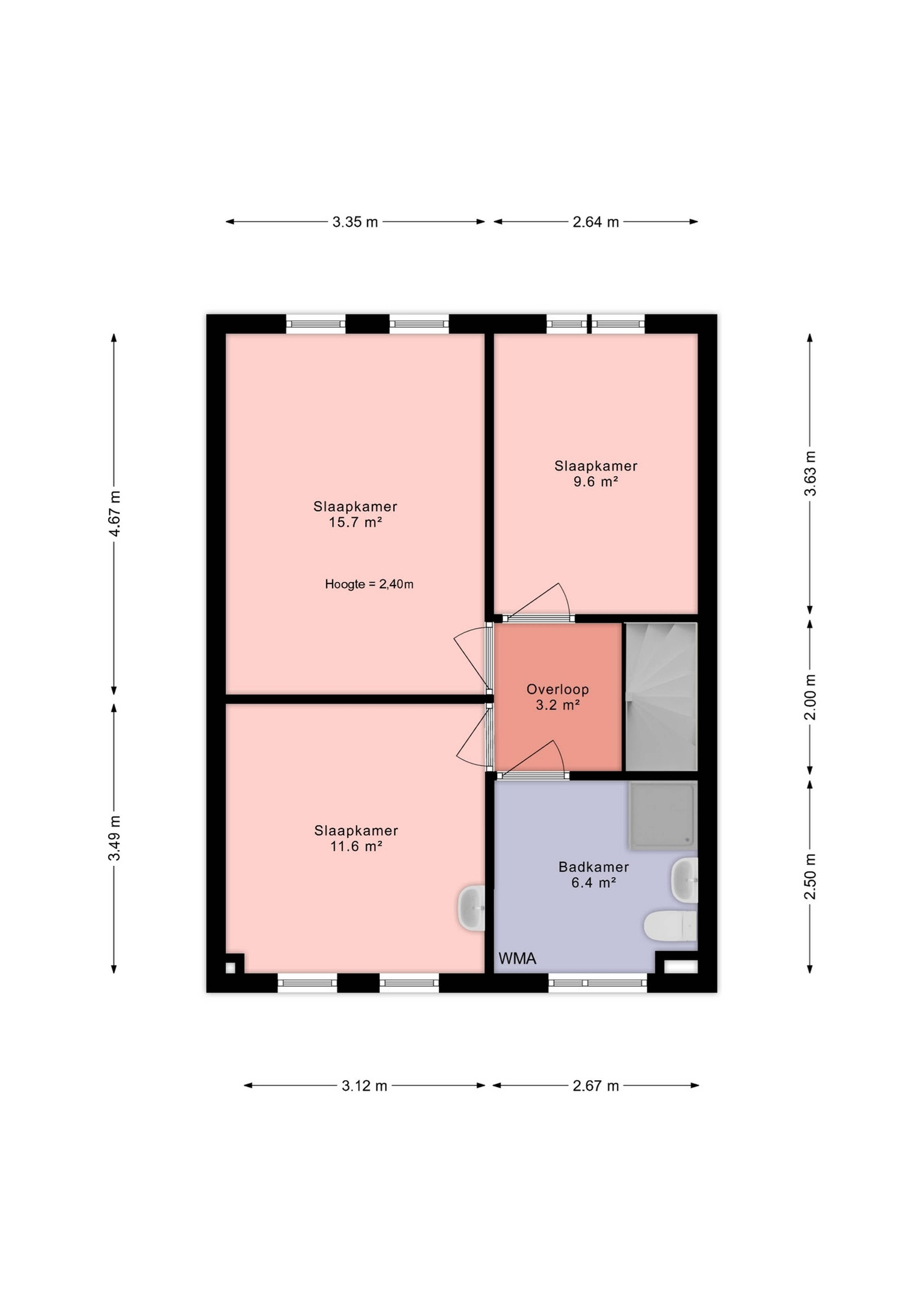 Hier bevinden zich de ruimte met opstelplaats van de CV ketel, een berg/werkruimte en een grote slaapkamer.