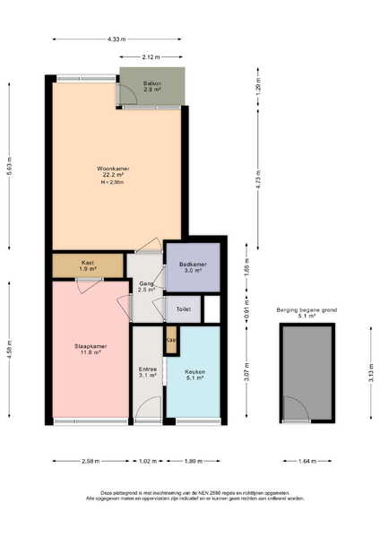 - Located on a leasehold until December 31, 2035: € 69,19 per year, revision has been requested;