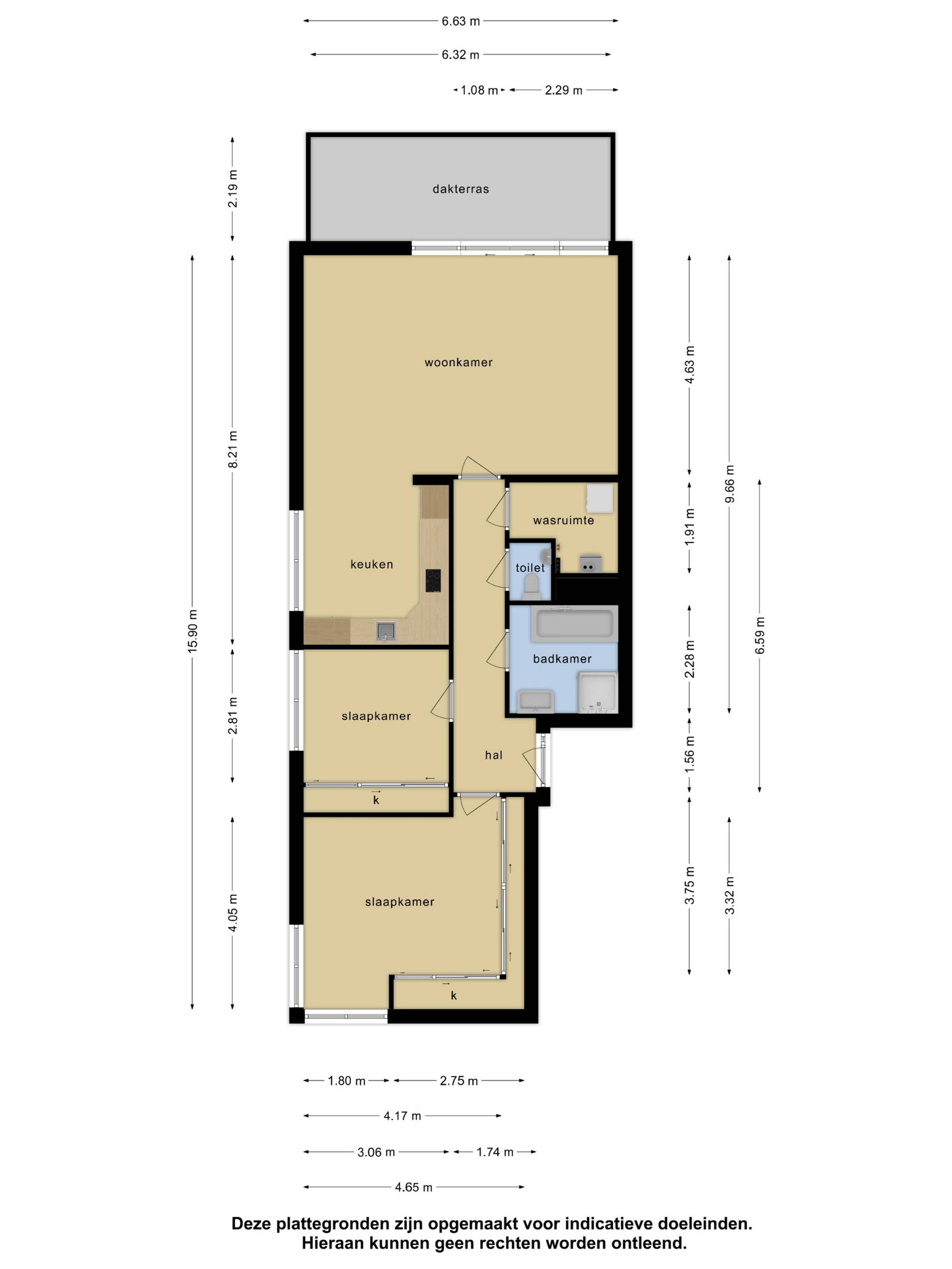 Daarnaast beschikt de woning over twee slaapkamers, beide voorzien van op maat gemaakte vaste kasten en laminaatvloeren. De hoofdslaapkamer aan de achterzijde is door ramen aan twee zijden zeer licht. De badkamer is uitgerust met een douche, ligbad en wastafel. Verder is er een apart toilet en een technische ruimte met aansluiting voor de wasmachine en de CV-ketel.