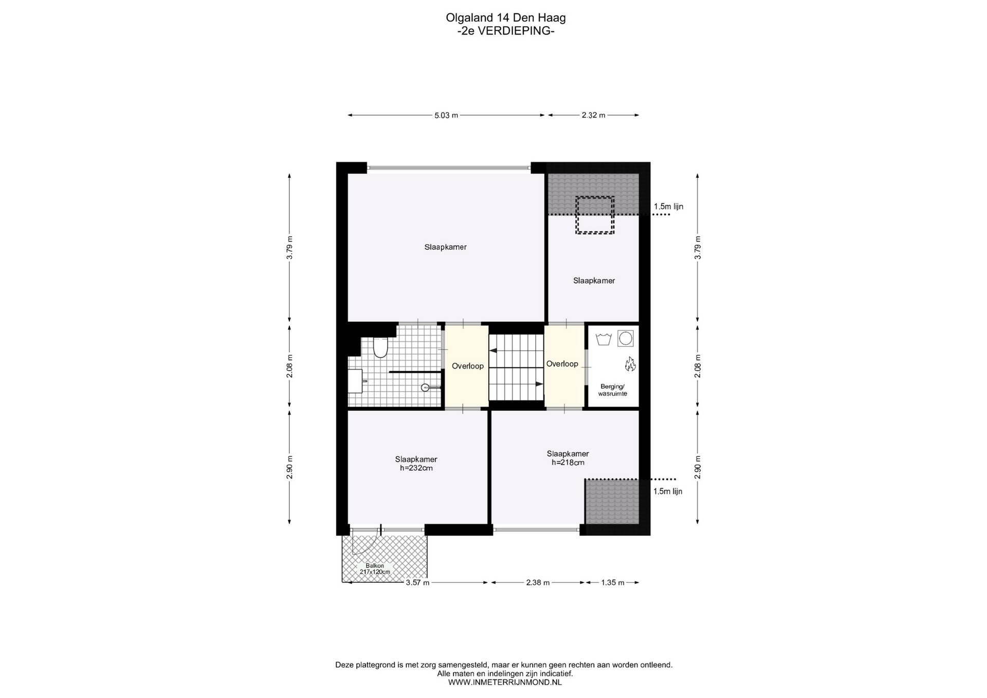 * Twee slaapkamers, waarvan één met brede dakkapel