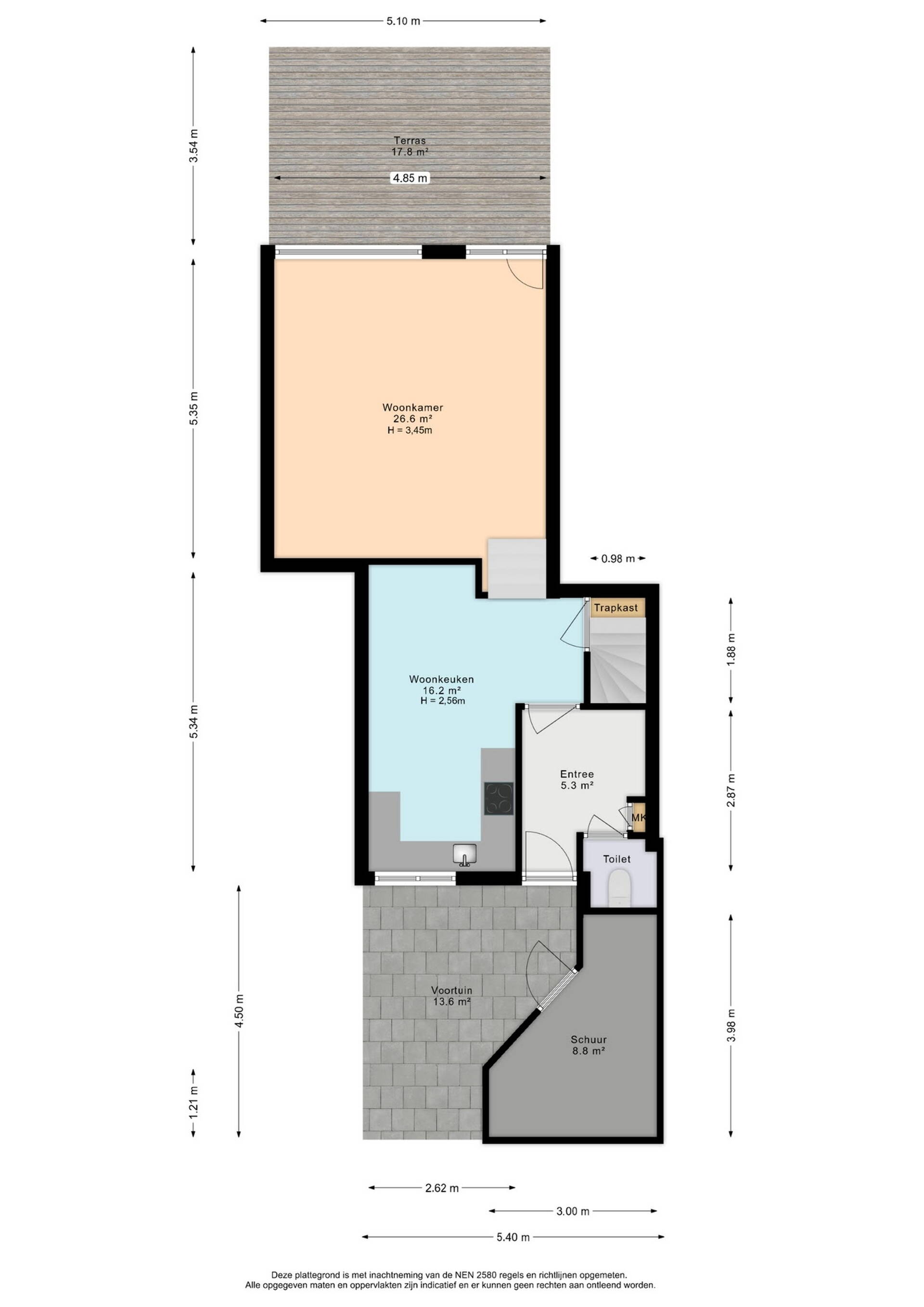 Through the covered front garden with access to the storage room, you enter the hallway with a coat alcove, meter cupboard, and a modern toilet with washbasin. The spacious kitchen at the front is equipped with an induction hob with extractor, oven, dishwasher, and separate fridge and freezer. From the kitchen, stairs lead down to the lower-level living room, which benefits from extra light and space thanks to the split-level design. Here you can enjoy high ceilings, a cozy open fireplace, and large plastic sliding doors opening onto your sunny south-facing terrace by the water.